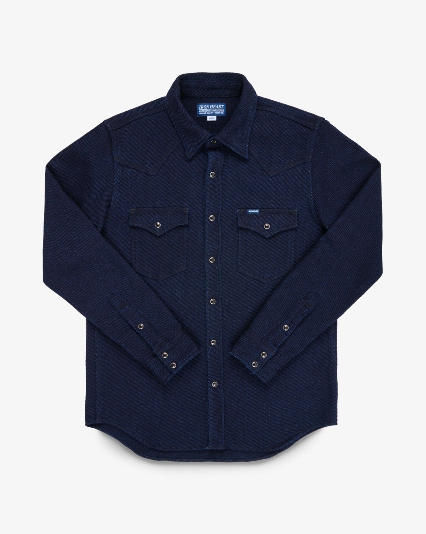 Black Iron Heart logo'd Permex snaps with button at collar