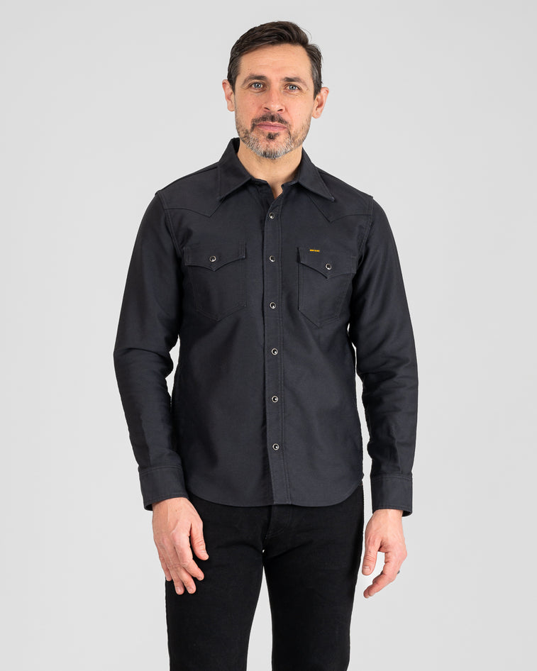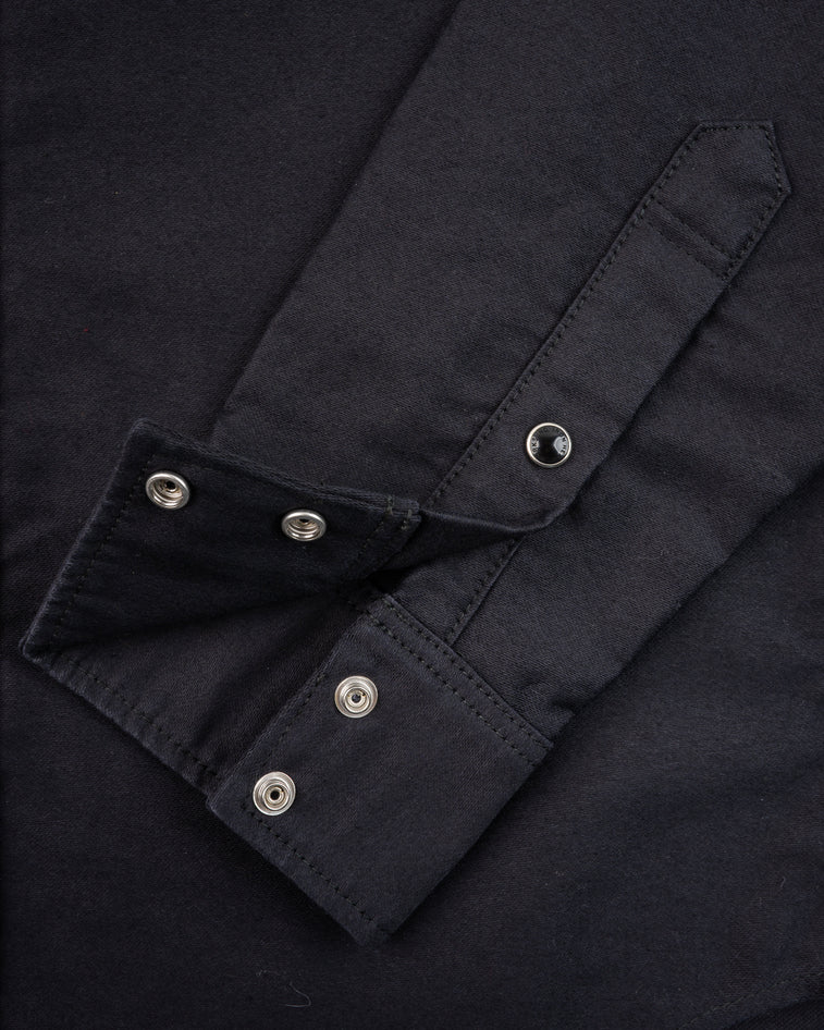 Weighing a hefty 12oz, this moleskin takes inspiration from vintage European military fabrics, similar to a German army moleskin. This means it's woven tighter and thicker than our previous moleskin fabrics, and is less heavily brushed to retain a little stiffness. To create a vintage military aesthetic, it's woven using sulphur-dyed yarns, allowing the colour to mellow with wear for a muted, timeworn appearance. Finished with tonal stitching and black heavy-duty snap fastenings.