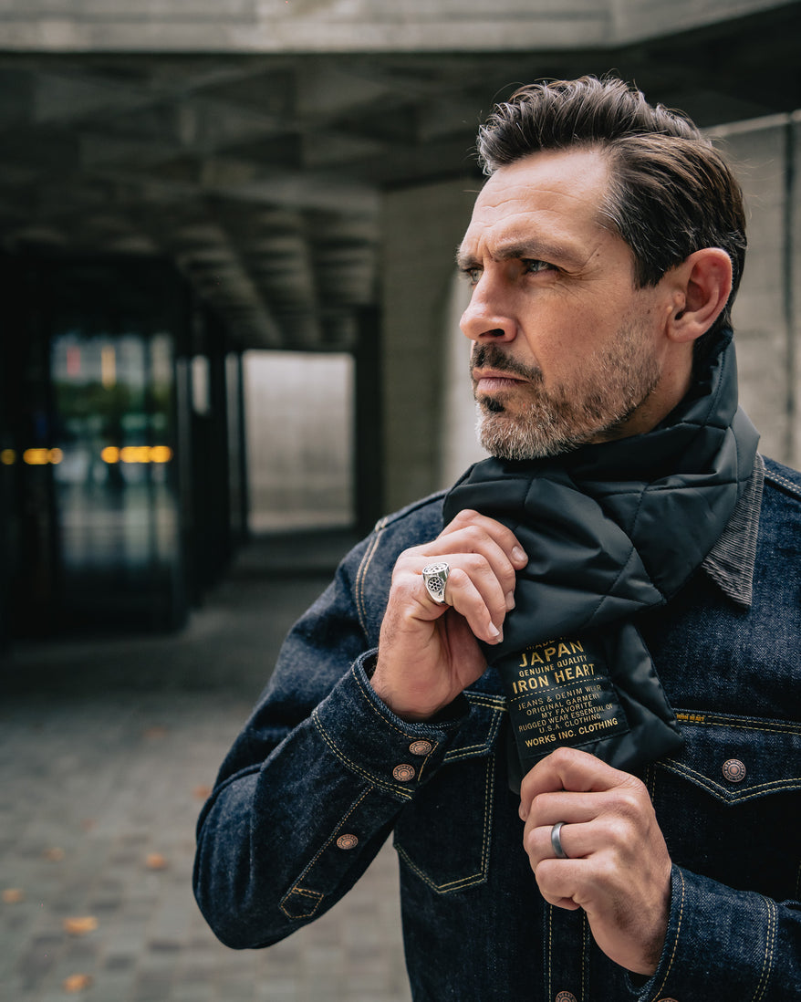 The Iron Heart PrimaLoft® muffler is perfect for keeping out the draught this winter. These are made using off-cuts from the PrimaLoft® fabric that are used in lots of technical wear, in scarf form. Iron Heart embroidered patch and microfleece lining on the inside, we're calling it a winter essential.